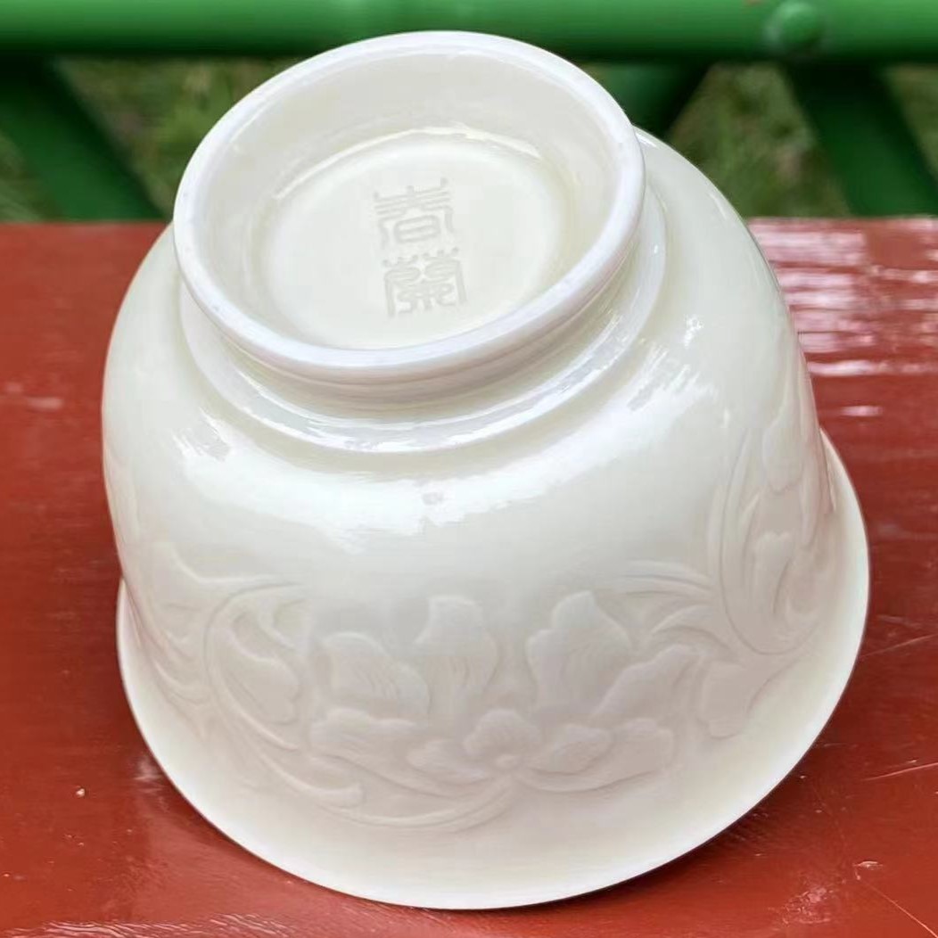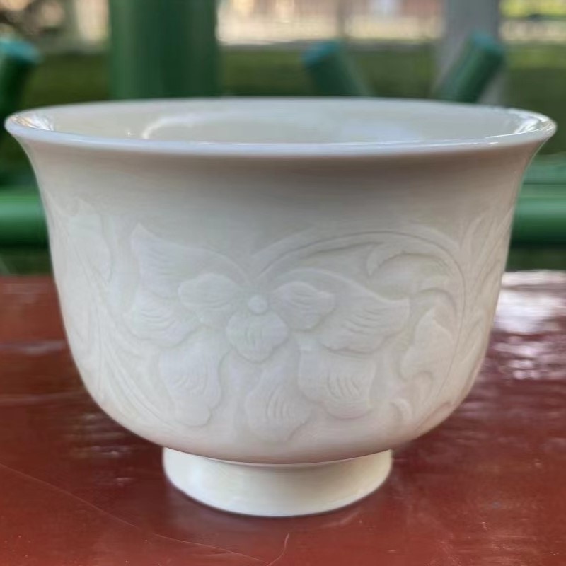 白釉牡丹紋飾杯